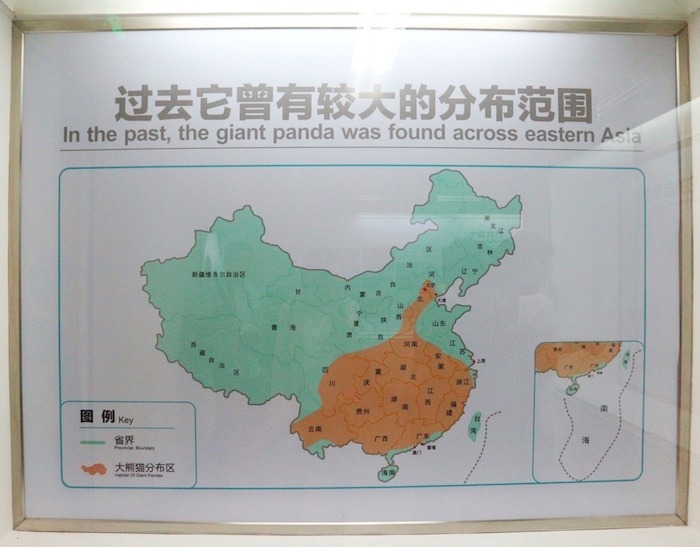 One of the first panels in the exhibition was the map of panda population at its peak, and the population recently.