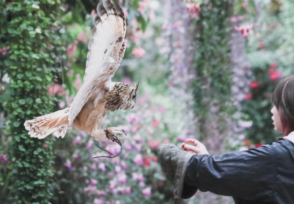 1日に2回バードショーを開催しており、トレーナーさんが順番にフクロウやハリスホーク・ノスリなどを飛ばします。