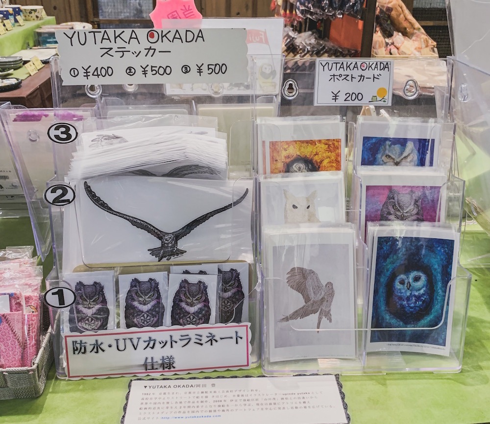 他にも素敵なフクロウアーティストさんのグッズコーナーもあり、木彫りや置物、かわいい鳥類モチーフの食器など…かなり充実した品揃えでした。