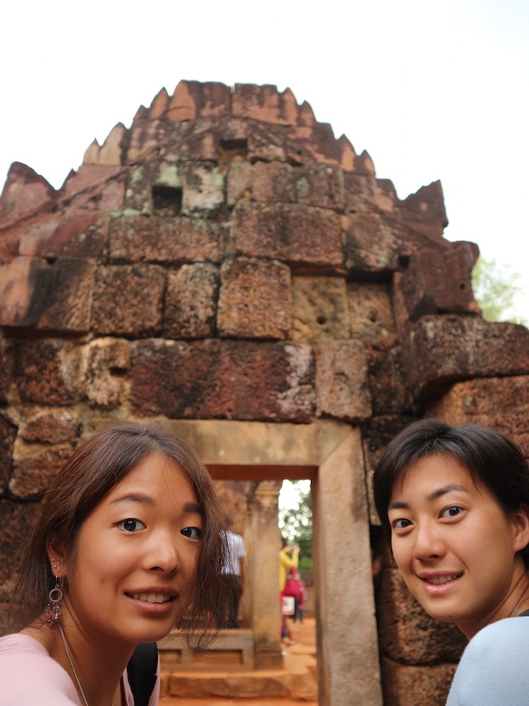 (日焼けが…笑 アンコールワット付近の別の遺跡にて。Blending in with the background... maybe this was at Banteay Srei...?)